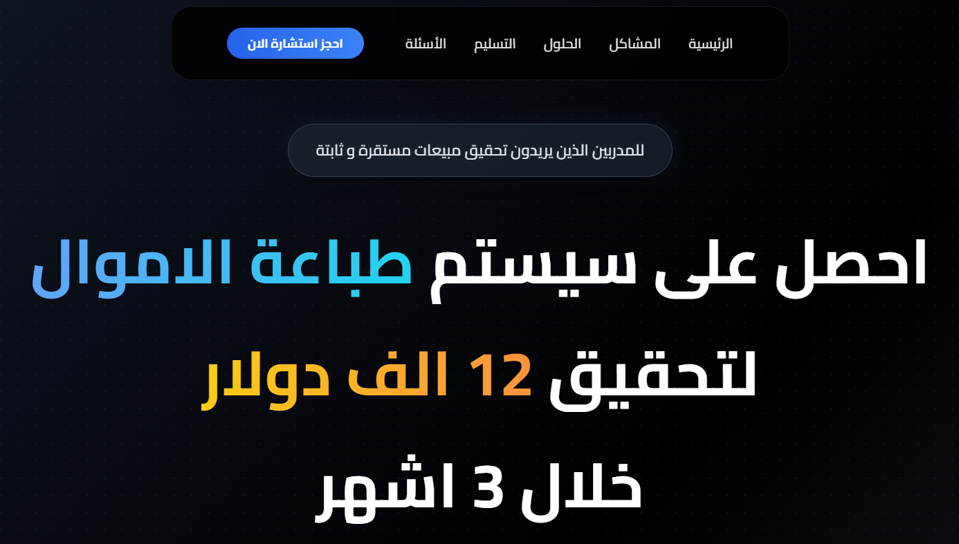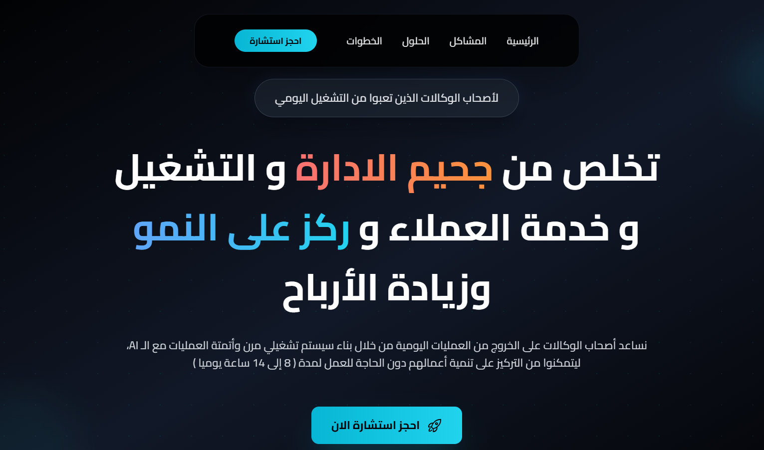 بدل ما تحبس نفسك شهور وتكتب وتبني لوحدك نحن نسلّم لك صفحة احترافية خلال 7 أيام فقط تجلب لك: مكالمات – مبيعات – عملاء.