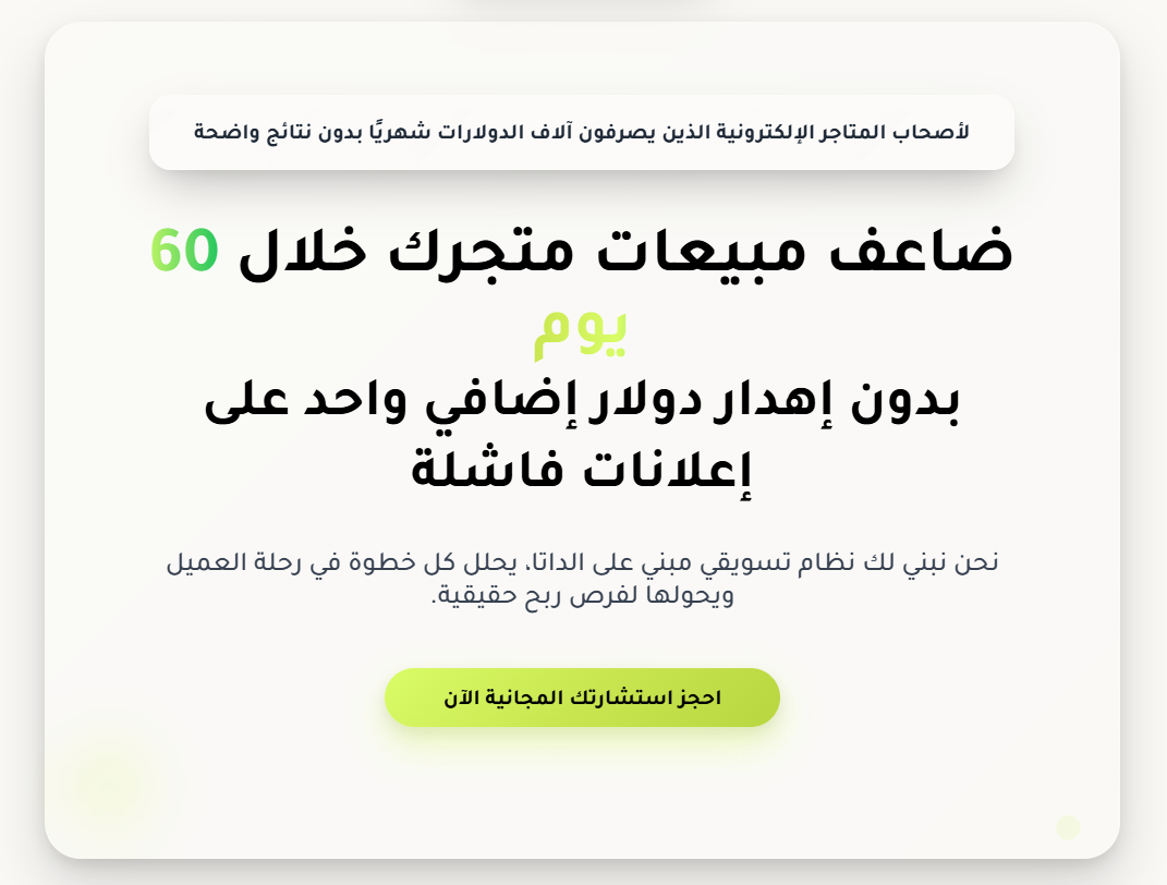 صفحة واضحة سريعة وتشتغل على هدف واحد تحويل الزائر لعميل.